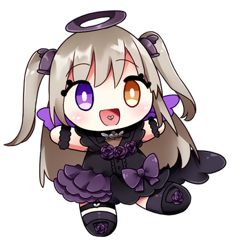 等身立ち絵2枚/ちびキャラ立ち絵3枚/小物イラスト2枚の計7枚がセットになっています